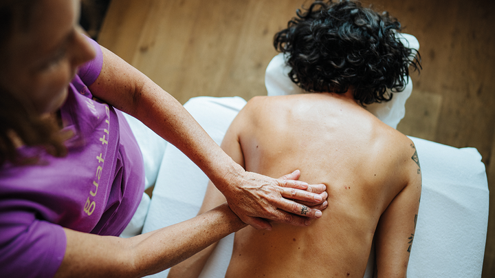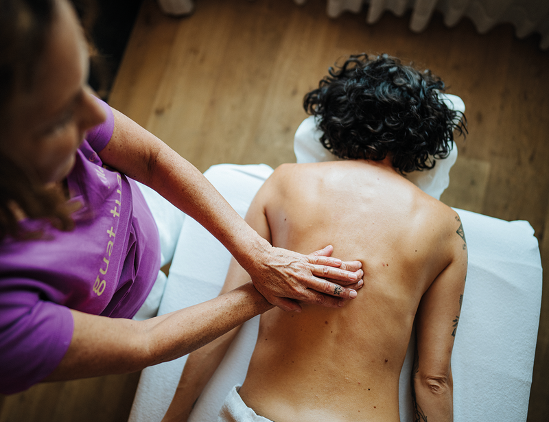 Gentle massage with warm oil on the LadyMary special lounger - it's good to relax comfortably on your stomach again.