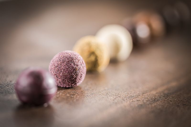 - 6 Feuerberg chocolates, made by hand.