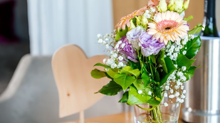 We can present the greetings at breakfast or at dinner in the restaurant, please let us know your wishes and the day. Order your arrangement online right here. Please order at least 3 days in advance so that we can prepare everything according to your wishes.